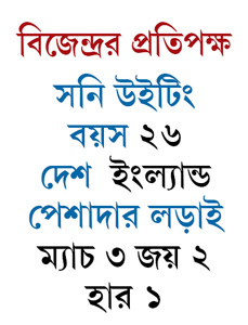 বিজেন্দ্র: (একটু ভেবে) আমি শুধু এটুকু বলতে চাই, দেখো ভাই সনি, ভারতীয় বক্সিংটা কি জিনিস সেটা কাল রিংয়ে নেমে তোমাকে বুঝিয়ে দেব।
