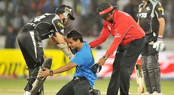 এরকম অনুশীলন ম্যাচে খুব একটা গ্যালারি ভর্তি হতে দেখা যায় না। কিন্তু আজ ছিল বিশেষ দিন। অধিনায়ক হিসেবে এটাই ছিল ধোনির শেষ ম্যাচ। তাই ভর্তিই ছিল ব্রেবোর্ন স্টেডিয়াম। সবার চোখে ধুলো দিয়ে এক ফ্যান হঠাৎই ঢুকে পড়েন মাঠে। ২০১৩ সালে রঞ্জি ট্রফির কোয়ার্টার ফাইনালে সচিনের সেঞ্চুরির পর এ ভাবেই মাঠের মধ্যে ঢুকে পড়েছিলেন এক ফ্যান। ঢুকেই সোজা সচিনের পায়ে। আর সৌরভ গঙ্গোপাধ্যায়ের সঙ্গে ঘটনাটি ঘটেছিল আইপিএল-এর ম্যাচে। তখন তিনি পুণে ওয়ারিয়র্সে। ২০১১ সালের ১০ এপ্রিল, হায়দরাবাদের ঘটনা।