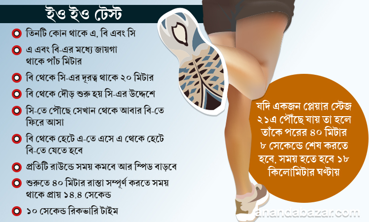 কোন ক্রিকেটারের শারীরিক দক্ষতা কতটা এবং সম্পূর্ণ ফিট হতে তাঁর কী ধরণের অনুশীলনের প্রয়োজন এই পরীক্ষার মাধ্যমে তা বুঝে নিতে চান দলের কর্তারা। পরীক্ষায় উত্তীর্ণ হতে না পারলে যদিও দল থেকে বাদ যাবেন না কেউই। কারণ চুক্তি হওয়ার পরেই এই টেস্ট দিতে হয়েছে সবাইকে।