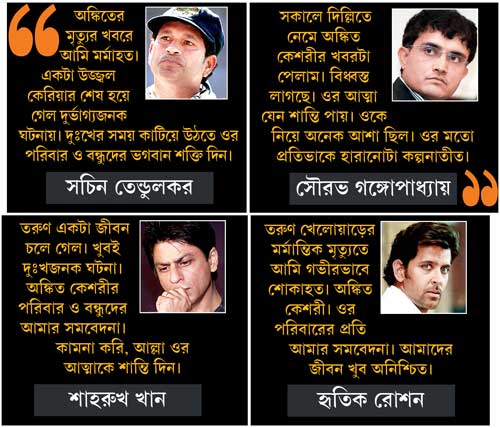 অঙ্কিতের পরিবারবর্গ যদিও কোনও অভিযোগ করেনি। অঙ্কিতের বাবা রাজকুমার কেশরী বলে গেলেন, তাঁর ছেলের বাঁচার কপাল ছিল না। কাউকে দোষারোপ তাঁরা করতেও চান না। তাঁরা বুঝে পাচ্ছেন না, রাতারাতি এত অবস্থার অবনতি হল কী ভাবে? ভাবতে চেষ্টা করছেন, শুক্রবার রাত পর্যন্ত অবস্থা ভাল ছিল না। কিন্তু শনিবার তো অঙ্কিতকে সুস্থই দেখিয়েছে। অল্পস্বল্প খাওয়া-দাওয়া করেছেন। কথা বলেছেন টুকটাক। ডাক্তাররা কেউ কখনও বলেননি, আশা ছেড়ে দিন। তা হলে কোথা থেকে কী হয়ে গেল? বিহ্বল দেখায় তাঁদের। শোকে মূহ্যমান দেখায়। যেমন দেখাল বিকেলে ইস্টবেঙ্গল ক্লাবে মুখ্যমন্ত্রী মমতা বন্দ্যোপাধ্যায়কে। ক্লাব লনে শায়িত অঙ্কিতকে দেখে শোকে মালা দিতে পারেননি মুখ্যমন্ত্রী। বেরনোর সময় বলে যান, ‘‘শুধু দেখতে এসেছিলাম। জীবনটা তো ওর শুরু হওয়ার আগেই শেষ হয়ে গেল।’’ অঙ্কিতের বন্ধু-বান্ধব, সতীর্থ— তাঁরাও নির্বাক। ভাষা হারিয়েছেন।
