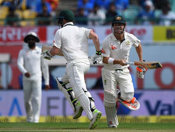 ধর্মশালা টেস্টে ডেভিড ওয়ার্নার এবং স্টিভেন স্মিথ। ছবি- এএফপি