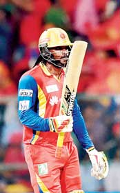 অষ্টম আইপিএলে স্বমেজাজে ফিরে এ বারের টুর্নামেন্টের দ্রুততম সেঞ্চুরি করলেন গেইল। বিরাট কোহলি ক্রিজের উল্টো দিক থেকে যে ইনিংস দেখে মুগ্ধ, ‘‘সবাই যখন কমলা টুপির জন্য জান লড়িয়ে ব্যাট করছে, ও একদিন জেগে উঠে একটা ইনিংস খেলে টুপিটা কেড়ে নেয়!’’
