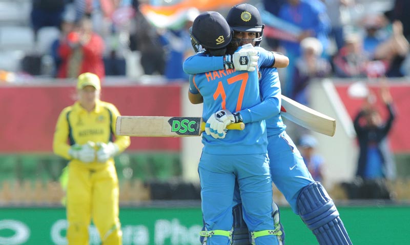 সেঞ্চুরির পর সতীর্থের আলিঙ্গনে হরমনপ্রীত।