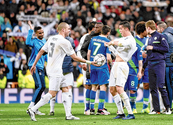 রোনাল্ডোর সঙ্গে হ্যাটট্রিকের রোমান্স অবশ্য নতুন কিছু নয়। প্রতি ইউরোপিয়ান মরসুমেই চার-পাঁচটা করে থাকেন। কিন্তু তাঁকে কটাক্ষ করা হয়— বিগ ম্যাচ প্লেয়ার নন! আসলে হয়তো সবাই ভুলে যান, কী ভাবে প্লে-অফ ম্যাচে হ্যাটট্রিক করে পর্তুগালকে একার হাতে আগের বিশ্বকাপেই মূল পর্বে তুলেছিলেন রোনাল্ডো! রিয়ালের ‘লা ডেসিমা’-র মরসুমে চ্যাম্পিয়ন্স লিগে রেকর্ড সংখ্যক ১৭ গোল করেছিলেন। এ বারও চ্যাম্পিয়ন্স লিগে কোয়ার্টার ফাইনাল অবধি তাঁর গোল সংখ্যা ১৬। নিজের রেকর্ড নিজেই ভাঙার মুখে। চ্যাম্পিয়ৈৈন্স লিগের ইতিহাসে চিরপ্রতিদ্বন্দ্বী লিও মেসির চেয়ে দশ গোলে এগিয়ে। মোট ৯৩ গোল করে। ‘এমএসএন’ শাসিত লা লিগাতেও সর্বোচ্চ গোলদাতা রোনাল্ডোই। হায়, এর পরেও ফুটবলের র্যাম্বোকে কটাক্ষ শুনতে হয়!