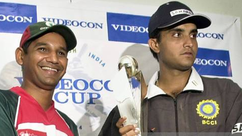 ধোনির প্রথম সিরিজের দুই অধিনায়ক হাবিবুল বাশার ও সৌরভ গঙ্গোপাধ্যায়। —ফাইল চিত্র।