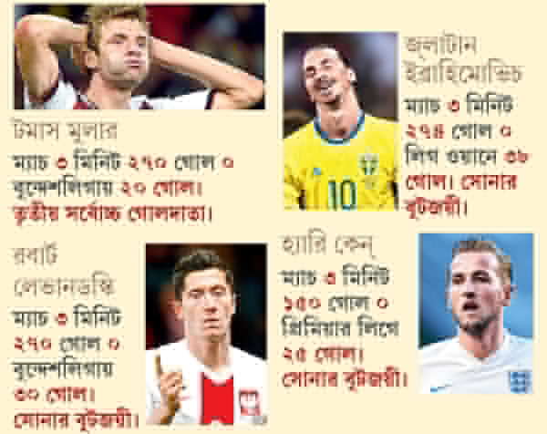 ইউরো শুরু হওয়ার আগে প্রায় প্রত্যেক বিশেষজ্ঞের সম্ভাব্য সোনার বুটজয়ীদের তালিকায় ছিলেন টমাস মুলার, রবার্ট লেভানডস্কি, হ্যারি কেন্, জ্লাটান ইব্রাহিমোভিচরা। দু’মাস আগের ক্লাব ফুটবলের ছবি দেখলে ধরা পড়বে বুন্দেশলিগা, ইংলিশ প্রিমিয়ার লিগ, ফরাসি লিগে এঁরা গোলের পর গোল করে এসেছেন। কেউ কেউ আবার নিজেদের ব্যক্তিগত লিগে সোনার বুটও জিতেছেন। ইউরোয় ওঁদের মধ্যে কারও দল শেষ ষোলোয় উঠেছে, কারও দল বিদায় নিয়েছে। কিন্তু এই সোনার ফরোয়ার্ডদের মধ্যে ইউরোয় মিল একটাই— কারও নামের পাশে কোনও গোল নেই।