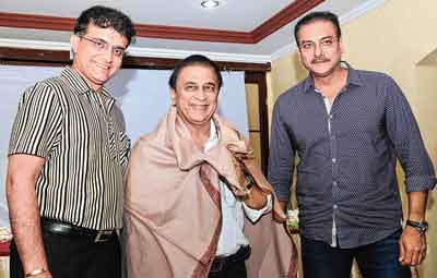 হবু এবং ভারতীয় দলের বর্তমান টিম ডিরেক্টর! সঙ্গে লিটল মাস্টার। রবিবার দুপুরে সুনীল গাওস্করের সংবর্ধনা অনুষ্ঠানে সৌরভ গঙ্গোপাধ্যায় ও রবি শাস্ত্রী। সোমবারই হয়তো ঘোষণা করে দেওয়া হবে নতুন টিম ডিরেক্টরের নাম। রবিবার রাত থেকে ইডেনে নতুন জল্পনা, পরামর্শদাতা কমিটিতে কি সৌরভকে রাখা হবে, না তিনি নিছকই হবেন টিম ডিরেক্টর? যদি না রাখা হয় সেক্ষেত্রে কমিটি হবে দুই সদস্যের—সচিন এবং শাস্ত্রী। মধ্য কলকাতায় চিত্রসাংবাদিক সুমন চট্টোপাধ্যায় আয়োজিত অনুষ্ঠানে সংবর্ধনা দেওয়া হয় সাংবাদিক অশোক দাশগুপ্তকেও। ছবি: শঙ্কর নাগ দাস