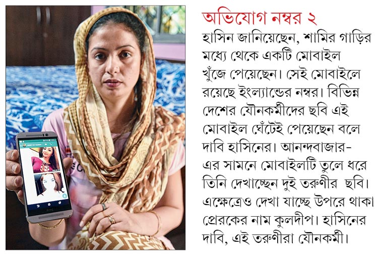 হাসিনের অভিযোগ, এই ফোনেই দেশ-বিদেশের বিভিন্ন মহিলার সঙ্গে রসালাপ চলত শামির। এই ফোন থেকেই উঠে আসছে আরও দু’জনের নাম। জনৈক ‘কুলদীপ ভাই’ এবং করাচির ‘আলিশবা’ নামে এক তরুণী। এই ‘কুলদীপ ভাই’ বিভিন্ন ক্রিকেট সফর চলাকালীন শামির কাছে যৌন কর্মীদের পাঠাত বলে অভিযোগ হাসিনের। আর আলিশবা করাচিতে থাকেন। তাঁকেই বিয়ে করতে চান শামি, অভিযোগ করছেন হাসিন।