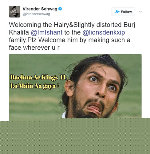 ২৮ বছরের ইশান্তের ১০৭টি টি২০ ম্যাচে রয়েছে৮৮ উইকেট। সেরা বোলিং ১২ রানে পাঁচ। ভারতের হয়ে খেলেছেন ৭৭টি টেস্ট। এখানেই অবশ্য শেষ হয়নি বীরেন্দ্র সহবাগের সেই টুইট। তাতে যোগ দিয়েছেন সচিন তেন্ডুলকর থেকে বিরাট কোহালি সকলেই। সচিন লিখেছেন, ‘মাস্টার ্স্ট্রোক ফর্ন বীরু পাজি।’ বিরাট কোহালি আবার তুলনা করে জিজ্ঞেস করেছেন, ‘বুর্জ খলিফা? আমার তো মনে হচ্ছে আইফেল টাওয়ার।’