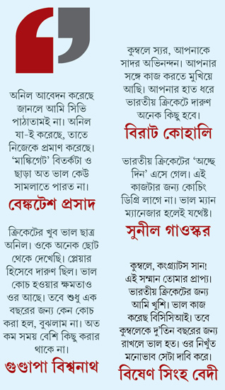 কুম্বলে: থ্যাঙ্ক ইউ। আমি আমার মতো করে একটা রূপরেখা দেখানোর চেষ্টা করেছি যে, ভারতীয় ক্রিকেটকে কোথায় নিয়ে যাওয়া যায়।
