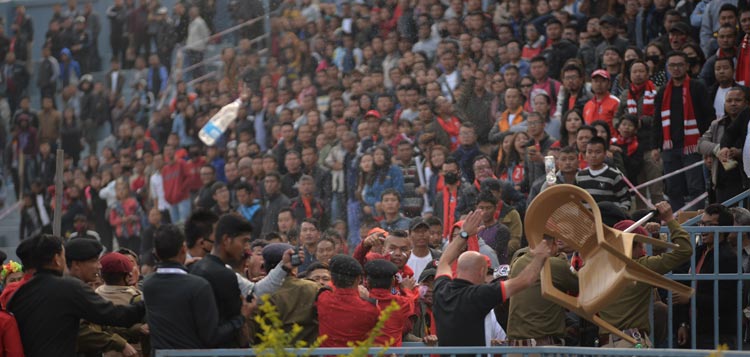 ম্যাচ শেষে এ ভাবেই উত্তাল হল আইজলের গ্যালারি।