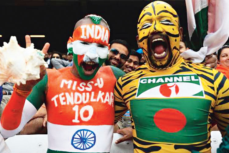 কিন্তু সে আজ থেকে উনিশ বছর আগের কথা। সাম্প্রতিকতম ছবি হচ্ছে, বাংলাদেশে ওয়ান ডে সিরিজ হারের পরে সেখানকার একটি দৈনিক ভারতীয় ব্যাটসম্যানদের মাথা মুড়িয়ে কার্টুন ছাপল। তাতে লেখা, মুস্তাফিজ়ুরের কাটারে এমনই অবস্থা হয়েছে ভারতীয় ব্যাটসম্যানদের। তার আগে বাংলাদেশের ক্রিকেট-ভক্তদের খেপিয়ে দেয় ভারতীয় টিভি সংস্থার সেই ‘মওকা মওকা’ বিজ্ঞাপন। তাতে বাংলাদেশের ক্রিকেট-ভক্তকে রীতিমতো অপমান করছেন ভারতের এক দর্শক। সে-বার বাংলাদেশ যখন ভারতকে হারাচ্ছে, মীরপুরের স্টেডিয়াম চিৎকার করে গিয়েছিল ‘মওকা মওকা’। এখানেই শেষ নয়। এর পরে এশিয়া কাপে খেলতে গেলে ছড়িয়ে পড়ল আর এক ছবি। ধোনির কাটা মুন্ডু হাতে দাঁড়িয়ে আছেন বাংলাদেশের ফাস্ট বোলার তাসকিন। সেই ম্যাচে বাংলাদেশের পেসারদের নির্মম প্রহারে জবাব দিলেন ধোনি। নিদাহাস কাপে ম্যাচ জিতে নাগিন ডান্স করছিলেন বাংলাদেশের ক্রিকেটারেরা। দীনেশ কার্তিক ফাইনালে শেষ ওভারে ভারতকে জেতানোর পরে এ বার ভারতীয় সমর্থকেরা ইন্টারনেট হামলা চালালেন। কার্তিকের হাতে বিন ধরিয়ে তাঁকে সাপুড়ে সাজানো হল।