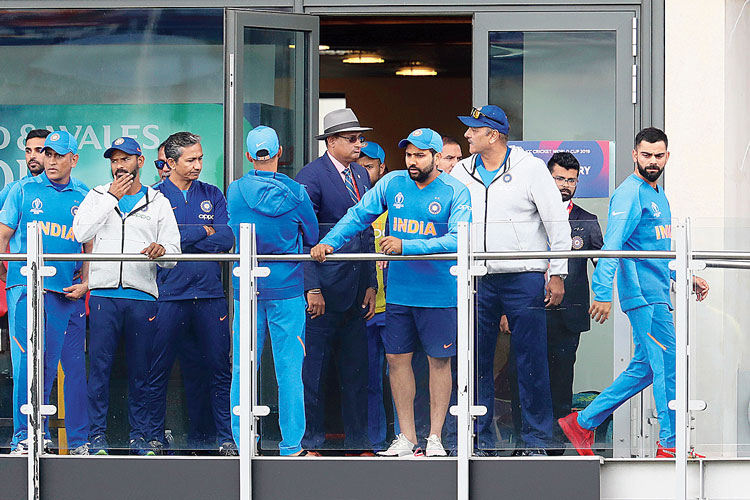 বিষণ্ণ: বিশ্বকাপের স্বপ্ন শেষ। বুধবার ম্যাঞ্চেস্টারে হারের পরে বিমর্ষ রোহিত, হেড কোচ শাস্ত্রী এবং কোহালি। এপি