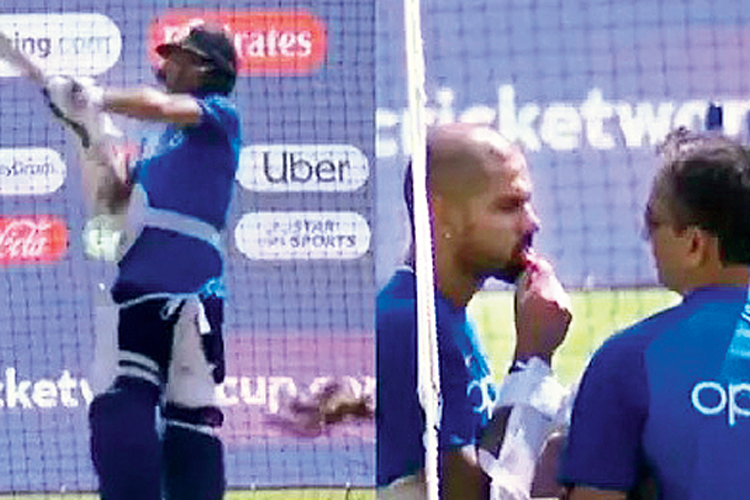 নেটে ব্যাট করতে গিয়ে আহত শিখর। টুইটার
