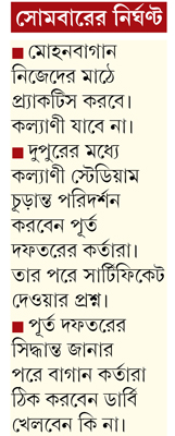 এত সবের পরেও এখনও ডার্বি-জট কাটল না। সব ঠিকঠাক চললে, অভূতপূর্বভাবেই ডার্বির ভাগ্য চূড়ান্ত হবে সোমবার বিকেলে! মহা-ম্যাচের আটচল্লিশ ঘণ্টা আগে।