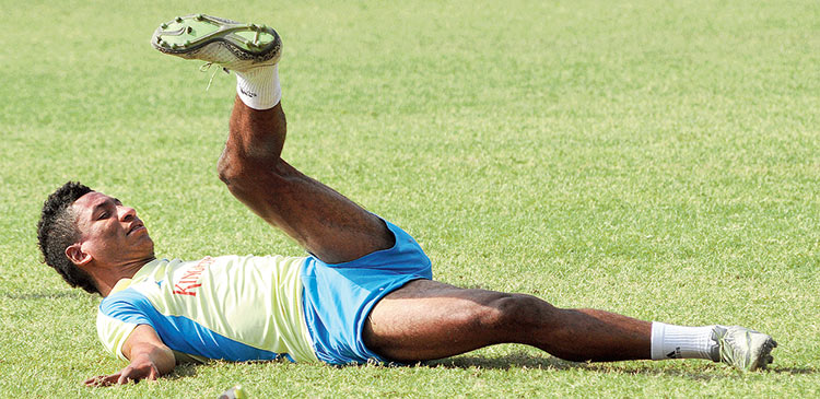 ডার্বির জন্য তৈরি হচ্ছেন লাল-হলুদের প্লাজা। বৃহস্পতিবার। ছবি: শঙ্কর নাগ দাস।