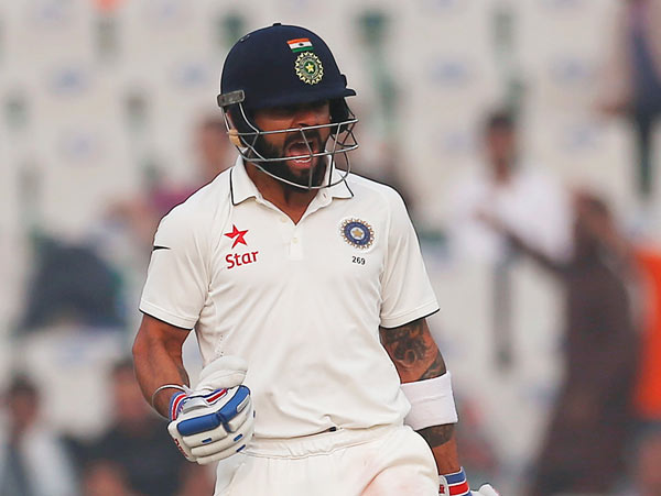 পার্থিবের ব্যাট থেকে বাউন্ডারি আসতেই এ ভাবেই উচ্ছ্বাস প্রকাশ করলেন ক্যাপ্টেন কোহালি।