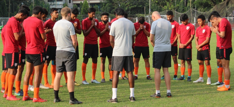 অনুশীলন শেষে ভারতীয় ফুটবল দল। ছবি: এআইএফএফ।