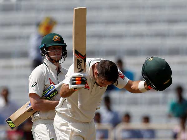 ম্যাড ম্যাক্স আউট হলেও নড়ানো যায়নি স্টিভ স্মিথকে। দিনের শেষে ১৭৮ রানে অপরাজিত রইলেন তিনি। ১৪০ রানে ৪ উইকেট যাওয়ার পর থেকেই ম্যাচের রাশ নিজেদের দিকে নিয়ে নেন স্মিথ-ম্যাক্সওয়েল। একেবারে ম্যাড ম্যাক্স সুলভ ইনিংস না খেলে ১৮৫ বলে ১০৪ রান করেন তিনি। জাডেজার বলে তিনি যখন আউট হলেন, দলের রান তখন ৩৩১। ভারতের মাটিতে পঞ্চম উইকেটে অস্ট্রেলীয় রেকর্ডও করে ফেললেন এই জুটি। ভাঙলেন মাইকেল ক্লার্ক-ম্যাথু ওয়েডের বছর চারেকের পুরনো রেকর্ড। অস্ট্রেলিয়ার অধিনায়ক হিসাবে ভারতের মাটিতে সেরা স্কোরের রেকর্ড করে ফেললেন এ দিন। ভাঙলেন মাইকেল ক্লার্কের ১৩০ রানের রেকর্ড।