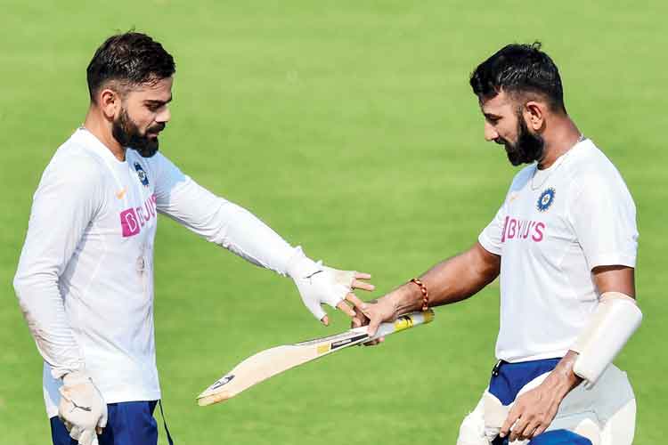 কোহালির পরেই পুজারা, মায়াঙ্ক, রাহানে সামনে থেকে ছোড়া গোলাপি বলে অনুশীলন করলেন। তখন কিন্তু তাঁদের বেশি পরাস্ত হতেই দেখা যাচ্ছিল। সাংবাদিক বৈঠকে রাহানে বলছিলেন, ‘‘জাতীয় ক্রিকেট অ্যাকাডেমিতে প্রথম বার গোলাপি বলের বিরুদ্ধে খেলার অভিজ্ঞতা হল। এক দিন দুপুরে ও এক দিন নৈশালোকে প্র্যাক্টিস করেছি। লাল বলের তুলনায় এই বলের আচরণ একেবারেই আলাদা।’’ আরও বলে গেলেন, ‘‘লাল বলের বিরুদ্ধে যে টেকনিকে খেলি, গোলাপি বলে তা কিছুটা পরিবর্তন করতে হতে পারে। গোলাপি বল অনেক বেশি নড়াচড়া করে। সাধারণ লাল বলের তুলনায় অনেক দেরিতে খেলতে হয়। শরীরের আরও কাছ থেকে খেলতে না পারলে সমস্যা হতে পারে ব্যাটসম্যানদের।’’
