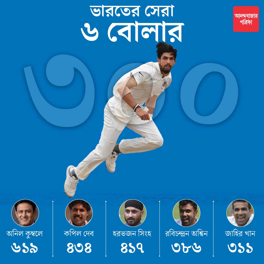 ভারতীয় বোলারদের মধ্যে ৩০০ ক্লাবে ইশান্ত ছাড়াও রয়েছেন অনিল কুম্বলে (৬১৯), কপিল দেব (৪৩৪), হরভজন সিংহ (৪১৭), রবিচন্দ্রন অশ্বিন (৩৮২), জাহির খান (৩১১)। ইংল্যান্ডের দ্বিতীয় ইনিংসের ১৬তম ওভারে ড্যান লরেন্সকে ফিরিয়ে ৩০০ উইকেটে পৌঁছন ইশান্ত। দ্বিতীয় ইনিংসে আর উইকেট পাননি তিনি। প্রথম ইনিংসে নেন ২টি উইকেট।
