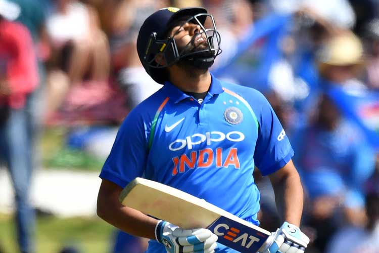 হাফ-সেঞ্চুরির পর রোহিত শর্মা। ছবি: এএফপি।