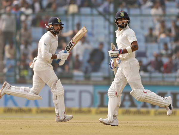 • ব্যাট করছেন মুরলী বিজয় এবং অধিনায়ক বিরাট কোহালি।