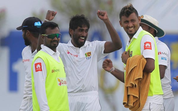 ভারতের তিন ব্যাটসম্যানকে প্যাভেলিয়নে পাঠানোর নায়ক নুয়ান প্রদীপকে ঘিরে শ্রীলঙ্কা দলের উচ্ছ্বাস।