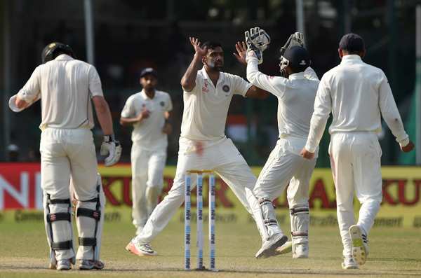 উইকেট নেওয়ার পর অশ্বিন। ছবি: এএফপি।