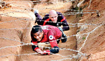 ওমানের বিরুদ্ধে যোগ্যতা অর্জনের গুরুত্বপূর্ণ ম্যাচের জন্য তৈরি হতে কাঁটাতারে ঘোরা ট্রেঞ্চ হামাগুড়িতে পেরোনো থেকে শুরু করে শূন্যে দড়ি বেয়ে এক জায়গা থেকে আর এক জায়গায় যাওয়ার কসরত— কী করলেন না সুনীল ছেত্রীরা! পুরোদস্তুর সেনা ট্রেনিং। যা এর আগে মহেন্দ্র সিংহ ধোনির ভারত করেছে। পোশাকি নামটা ‘টিম বিল্ডিং এক্সারসাইজ’। তবে ক্রিকেটে হলেও ভারতীয় ফুটবলে চিন্তাটা একেবারে অভিনব এবং এ দিন যা আমদানি হল জাতীয় কোচ স্টিভন কনস্ট্যানটাইনের উদ্যোগে। দিনের শেষে উচ্ছ্বসিত কনস্ট্যানটাইন বলেছেন, ‘‘জীবনের যে কোনও ক্ষেত্রেই একটা সফল টিম গড়তে এমন লোকেদের লাগে, যারা প্রবল চাপেও মাথা ঠান্ডা রেখে কাজ করতে পারে। বাণিজ্য হোক, কর্পোরেট জগৎ বা খেলার দুনিয়া, সর্বত্র ব্যাপারটা এক। সেই জন্যই এই টিম বিল্ডিং এক্সারসাইজ।’’