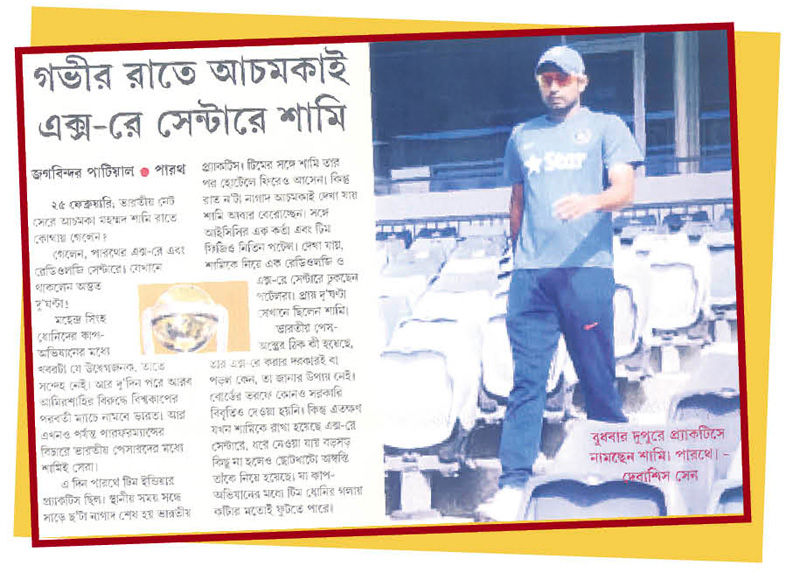 কিন্তু খচখচানি তো একটা থেকেই যাচ্ছে! কেন না এই একই কথা ডা. বাবা গতকাল মহম্মদ শামির চোটের মেডিক্যাল বুলেটিন দিতে গিয়েও বলেছিলেন। এবং আজ শামির ফিটনেস সম্পর্কিত চূড়ান্ত খবর— বাংলার তারকা পেসার শনিবারের আমিরশাহি ম্যাচে নেই। তাই ধোনির শনিবার টস করতে নামার আগে পর্যন্ত মিডিয়ার শ্যেনদৃষ্টি থাকবেই ভারত অধিনায়কের হাতের দিকে!