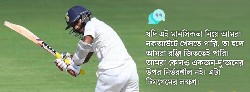 অভিমন্যু: তা তো বটেই। আমরা এ ভাবেও দেখছি যে এখনও উন্নতির অনেক জায়গা রয়েছে। যেমন, প্রথম ইনিংসে আমরা পিছিয়ে পড়ছি। সেটা যদি না হয়, যদি প্রথম ইনিংসেও আমরা নিজেদের সেরাটা দিতে পারি, তবে তো ম্যাচের নিয়ন্ত্রণ গোড়া থেকেই হাতে চলে আসবে। পিছিয়ে পড়ার পর লড়াইয়ে ফেরার সংঘর্ষে নামতে হবে না। নকআউটে কিন্তু শুরু থেকেই ম্যাচের রাশ ধরে ফেলতে হবে। পরে ফিরে আসব, এমন ভাবার কোনও জায়গা নেই। হ্যাঁ, এটা ঠিক যে চাপের মুখে আমরা দারুণ খেলছি। সেটা মনোবল বাড়াচ্ছে। কিন্তু সেই চাপটা প্রথম ইনিংসে বেটার খেললে আসবেই না!