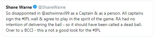 অস্ট্রেলিয়ার কিংবদন্তি লেগ স্পিনার শেন ওয়ার্নও অশ্বিনের সমালোচনা করেছেন।