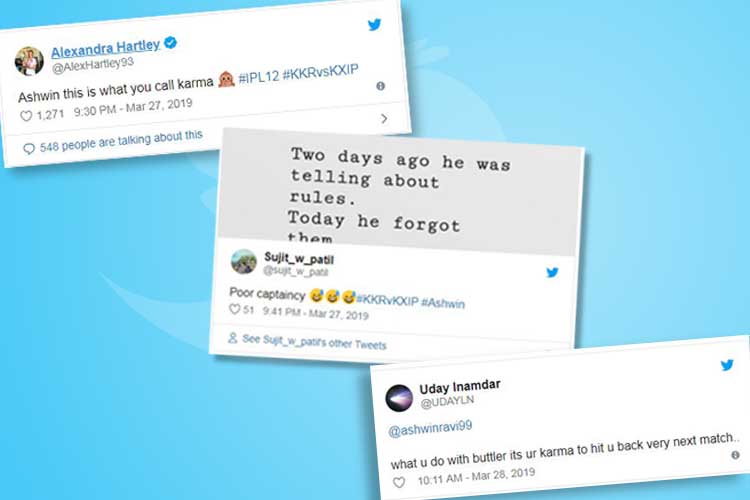 রবিচন্দ্রন অশ্বিন কর্মফলে বিশ্বাসী কি না জানা নেই। তবে বাটলারকে ‘মাঁকড় আউট’ করে ফেরানোর দিন দু’য়েকের ভিতরেই যে ভাবে শিক্ষা পেলেন, তাতে সোশ্যাল মিডিয়ায় প্রবল আলোড়ন। ইউজাররা লেখেন, যেমন কর্ম করেছেন অশ্বিন, তার ফলও পেয়েছেন হাতে নাতে। কেউ আবার লিখেছেন, দু’দিন আগে অশ্বিন নিয়মের কথা বলেছিলেন। আজ তিনিই ভুলে গেলেন নিয়ম। কেউ আবার অশ্বিনের নেতৃত্বকে দুয়ো দিয়েছেন।
