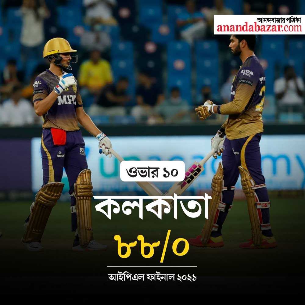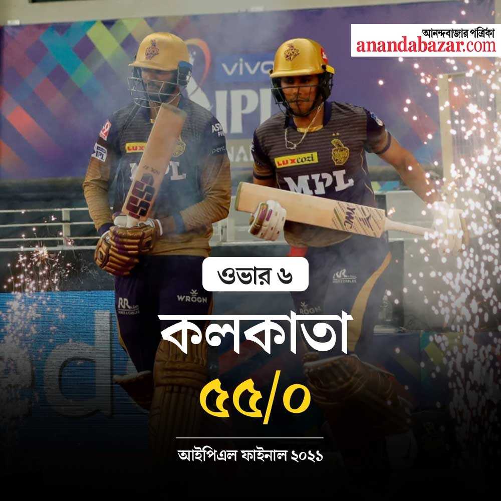 ওপেনিং জুটিতে ৫০ পেরিয়ে গেল কলকাতা। শুভমন ২১ এবং আয়ার ৩০ রানে ক্রিজে।