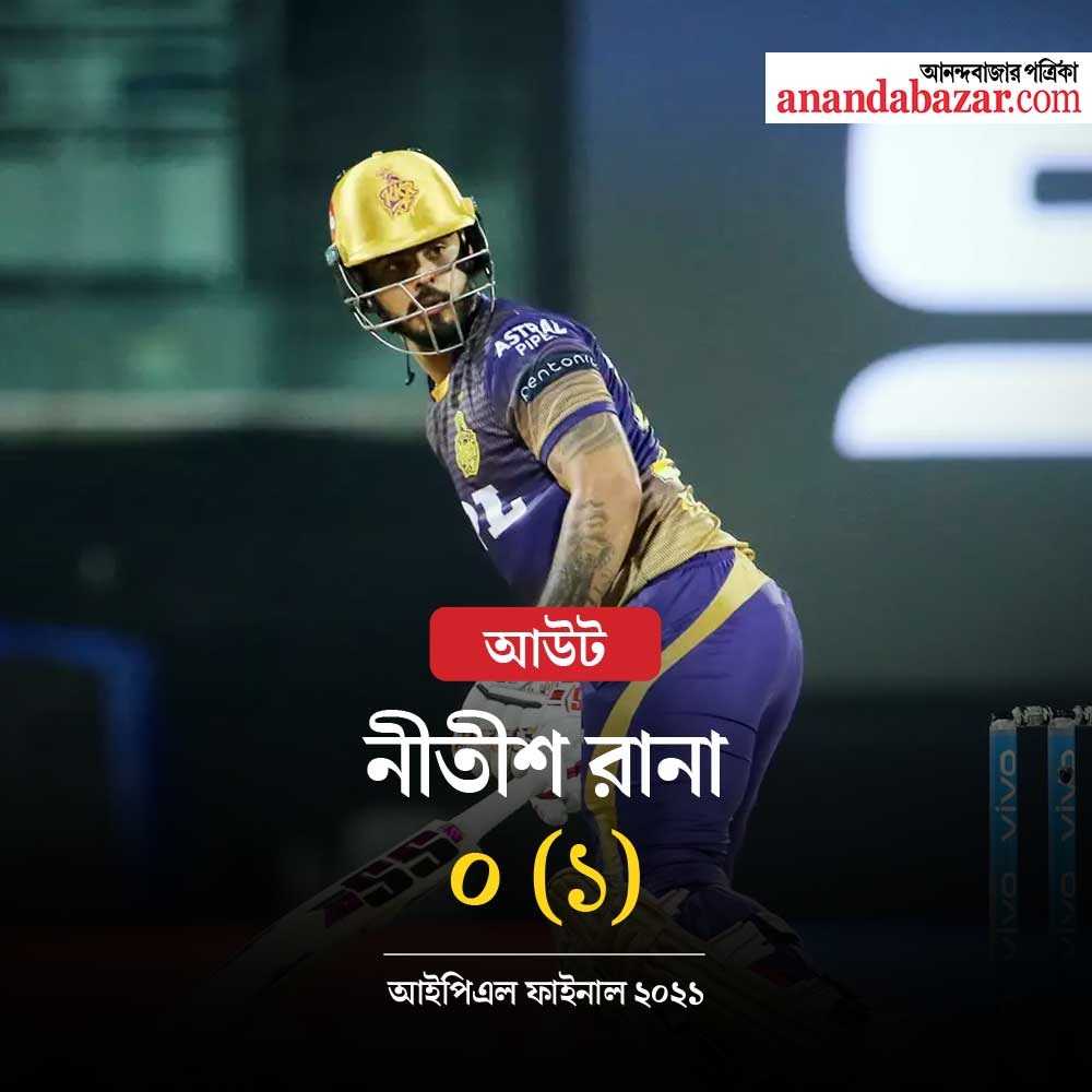 একই ওভারে দ্বিতীয় উইকেট হারাল কলকাতা। প্রথম বলেই ফিরলেন নীতীশ রানা (০)।