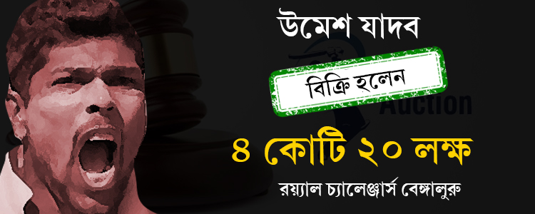 • ৪ কোটি ২০ লক্ষ টাকায় উমেশ যাদবকে দলে নিয়েছে রয়্যাল চ্যালেঞ্জার্স বেঙ্গালুরু।