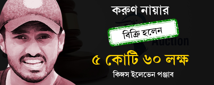 • ৫ কোটি ৬০ লক্ষ টাকায় করুণ নায়ারকে দলে নিয়েছে কিঙ্গস ইলেভেন পঞ্জাব।