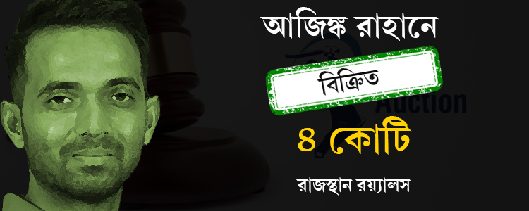 • ৪ কোটি টাকায় অজিঙ্ক রাহানেকে দলে নিল রাজস্থান রয়্যালস।