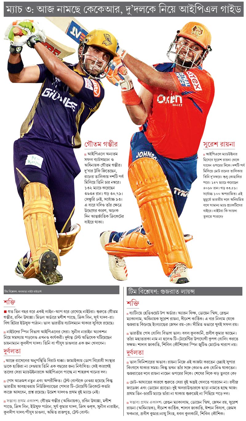 গম্ভীরের অবশ্য নিজের টিম নিয়ে পরিষ্কার ধারণা আছে। যেমন বলছিলেন, ‘‘পিচে ঘাস আছে তো কী? আমাদের হাতে পেস বিকল্পও আছে। নেথান কোল্টার নাইল, ক্রিস ওক্‌স আছে। ট্রেন্ট বোল্ট পুরোপুরি সুস্থ। ট্রেন্ট নতুন বলে উইকেট তোলার ব্যাপারে আমাদের বড় বাজি।’’ নাইট শিবির থেকে আরও একটা ব্যাপারের আঁচ পাওয়া যাচ্ছে। দীর্ঘ দিনের তিন বিশেষজ্ঞ স্পিনারের ফর্মুলা থেকে সরে এসে হয়তো এ বার তিন ফাস্ট বোলারে যেতে পারে কলকাতা। দু’জন স্পিনারকে দলে রেখে। বোল্ট, ওক্‌স, কোল্টার নাইলের মধ্যে দুই। সঙ্গী অঙ্কিত রাজপুত বা ঋষি ধবন। গম্ভীর বলছিলেন, ‘‘আমাদের ভারীতয় পেস আক্রমণও ভাল। অঙ্কিত খুব বোলার, ঋষি অলরাউন্ডার। তা ছাড়া সায়ন ঘোষ একটু অন্য রকমের বোলার। আন্দ্রে রাসেল না থাকা মানে এই পেসারদের সামনে একটা সুযোগ খুলে যাওয়া। আমি ব্যাপারটাকে সে ভাবেই দেখি।’’