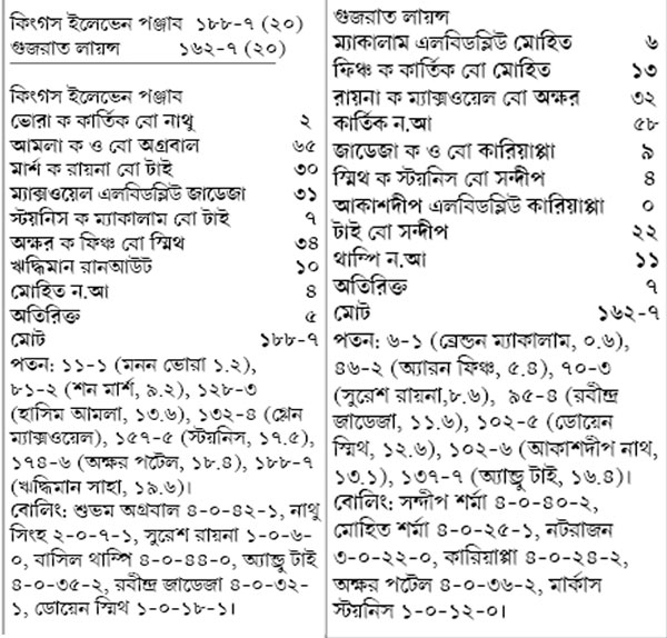 তবে গুজরাতের এই হারের জন্য তাদের শট নির্বাচনই দায়ী। ম্যাকালাম ফুলটস বলে এলবিডব্লিউ হলেন। অক্ষর পটেলকে পুল মারতে গিয়ে ডিপ মিডউইকেটে আউট হলেন রায়না। ডোয়েন স্মিথও তুলে মারতে গিয়ে মিসটাইম করলেন।
