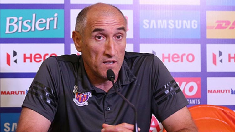 সাংবাদিক সম্মেলনে এফসি পুণে সিটির সহকারি কোচ।