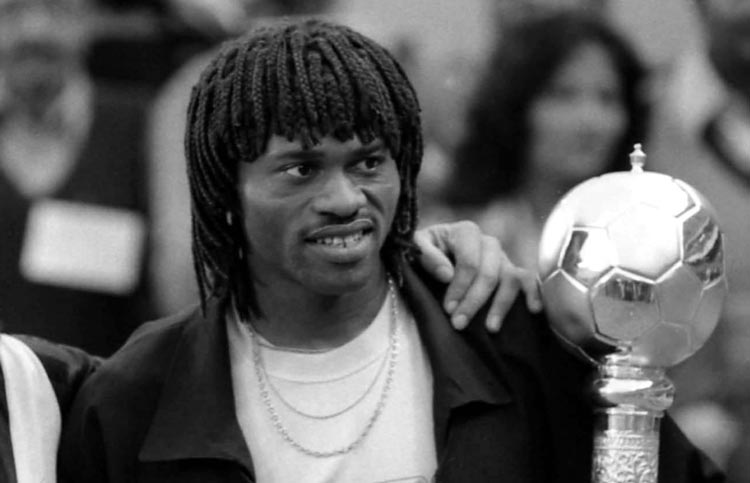 নেহরু গোল্ড কাপের সেরা ফুটবলারের পুরস্কার হাতে এমেকা।—ফাইল চিত্র।