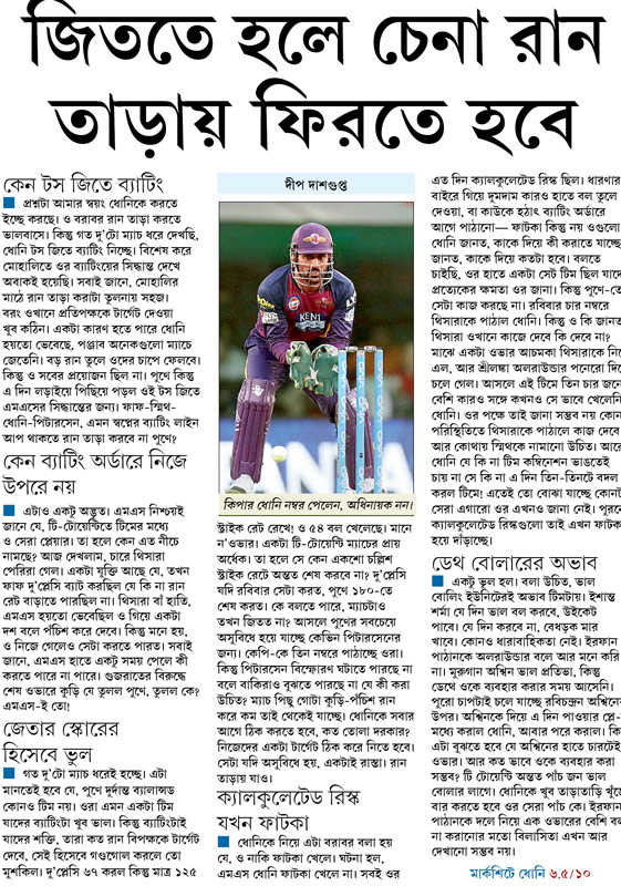 রবিবারের দিনটা হওয়ার কথা ছিল ভারতীয় ক্রিকেটের দুই মেগা তারকার। দুপুরটা ধোনির, রাতটা কোহালির। কিন্তু অভাবনীয় ভাবে আইপিএলের দুই ফেভারিট দলই হেরে গেল এ দিন। মোহালিতে কিংগস ইলেভেন পঞ্জাবের কাছে পুণে সুপারজায়ান্টস হারল ৬ উইকেটে। অন্য দিকে কুইন্টন ডি’ককের দুর্দান্ত সেঞ্চুরি জিততে দিল না কোহালির রয়্যাল চ্যালেঞ্জার্স বেঙ্গালুরুকে। মোহালিতে প্রথমে ব্যাট করে পুণে তোলে ১৫২। পুণে ক্যাপ্টেন করেন ১ রান। কিংগসের হয়ে মুরলী বিজয় (৪৯ বলে ৫৩) ও মনন ভোরার (৩৩ বলে ৫১) পাশাপাশি দুরন্ত ব্যাটিং করেন গ্লেন ম্যাক্সওয়েলও (১৪ বলে ৩২)। পঞ্জাব জেতে ৬ উইকেটে। দ্বিতীয় ম্যাচে পুণের মতো একই অবস্থা হল বেঙ্গালুরুরও। কুইন্টন ডি’ককের ৫১ বলে ১০৮ রানের ঝড়ে ১৯২ রানের টার্গেট রেখেও দিল্লি ডেয়ারডেভিলসের বিরুদ্ধে সাত উইকেটে হারল আরসিবি। ব্যর্থ কোহালির ৪৮ বলে ৭৯।