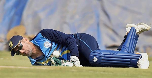 ঝাড়খণ্ডের হয়ে উইকেট কিপিং করছেন ধোনি।
