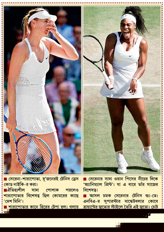 দু’হাজার চারে তখনও স্কুলের গণ্ডি না পেরনো যে সতেরো বছরের তন্বী টিনএজার ফাইনালে রীতিমতো প্রতিষ্ঠিত তারকা সেরেনাকে দাঁড় করিয়ে চ্যাম্পিয়ন হয়েছিল, যাঁকে ‘মাদার অব ফোরহ্যান্ড’ বলা হত, সেই শারাপোভার সঙ্গে আঠাশের এই রুশ টেনিস সুন্দরীর আকাশপাতাল তফাত। এগারো বছর আগের সেই উইম্বলডন ফাইনালের কয়েক মাস পরেই লস অ্যাঞ্জেলিসে ডব্লিউটিএ ট্যুরের ফাইনালে তলপেটে ব্যথা শুরু হওয়ায় সেরেনা তৃতীয় সেটে ৪-০ এগিয়ে থেকেও শারাপোভার কাছে হারে। কিন্তু সেই শেষ!