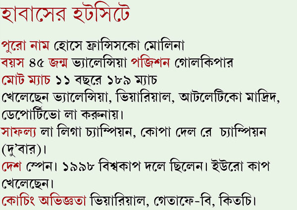 মোলিনা স্পেনের বিশ্বকাপার। তবে গোলকিপার হিসেবে ইংল্যান্ডের জেমসের মতো সিভি নয় তাঁর। আটানব্বই বিশ্বকাপে দলে থাকলেও একটাও ম্যাচ খেলার সুযোগ পাননি মোলিনা। জাতীয় দলে তাঁর অভিষেক ঘটে দু’বছর পর। দু’হাজার ইউরো কাপে। আটলেটিকো মাদ্রিদের হয়ে লা লিগা জেতা কিপার যদিও ইউরোয় নরওয়ের কাছে বিশ্রী গোল খেয়েছিলেন।