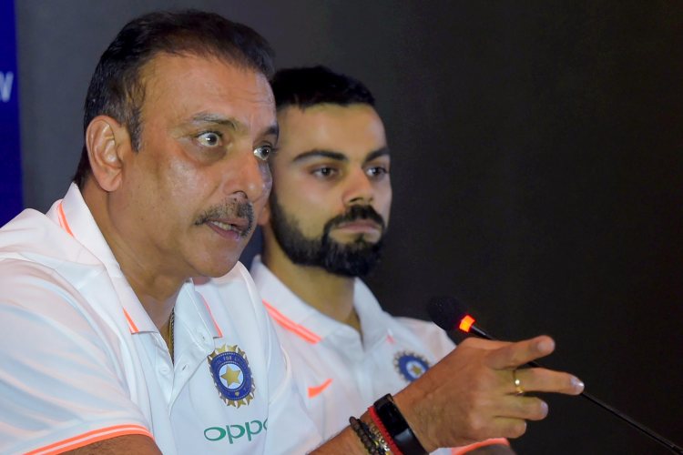 বিপক্ষ নিয়ে ভাবছি না, পাশে বিরাটকে নিয়ে এটাই কি বলছেন কোচ রবি শাস্ত্রী? ছবি: পিটিআই।