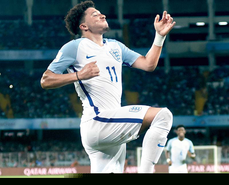 যুবভারতীতে গোল করে ইংল্যান্ডের স্যাঞ্চোর লাফ।