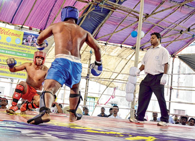 জাতীয় বক্সিং চ্যাম্পিয়নশিপ আয়োজিত হল দুর্গাপুরের সগড়ভাঙা কে ব্লকের মাঠে। নিজস্ব চিত্র।